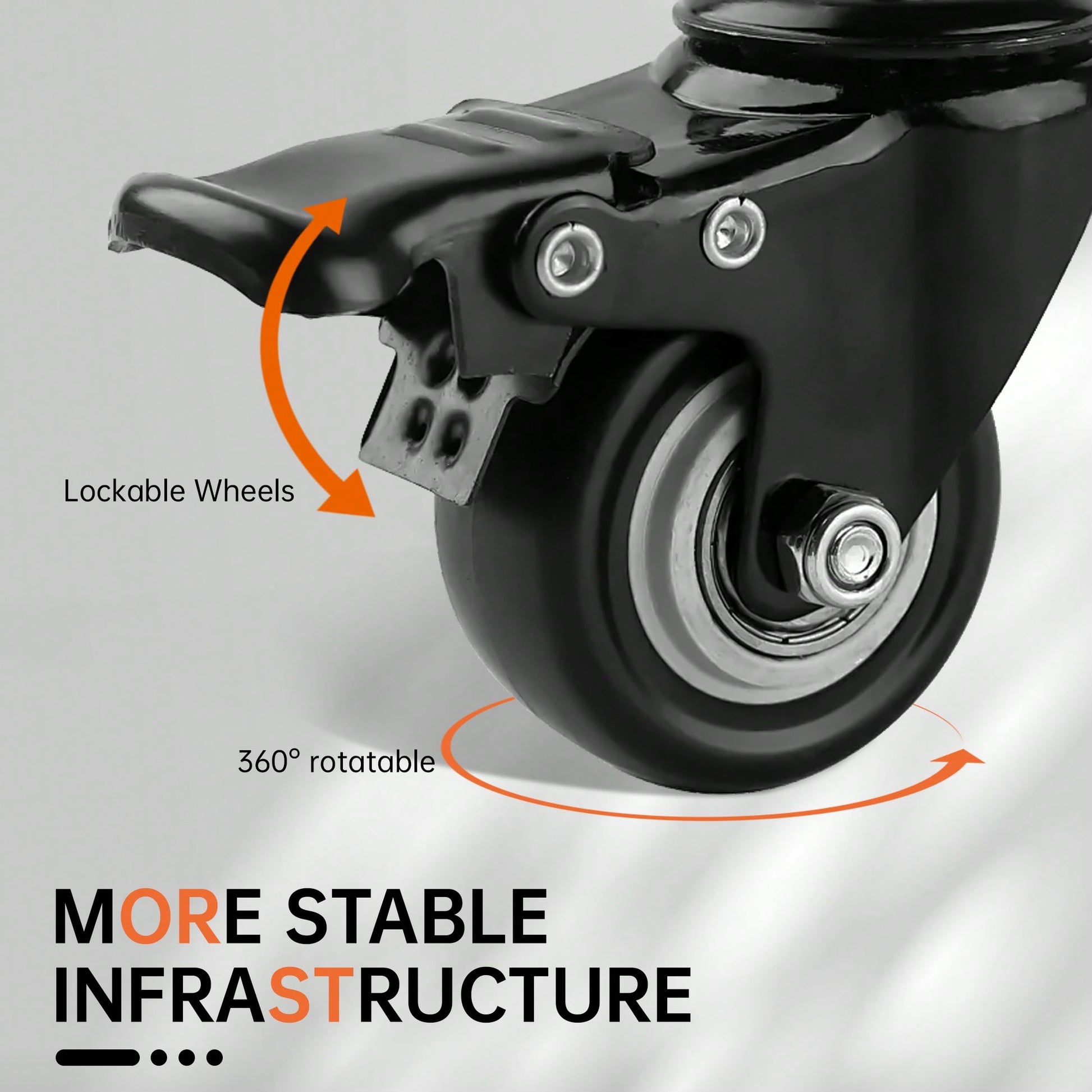 - Four 360° wheels for easy mobility and lockable for stability when stationary.