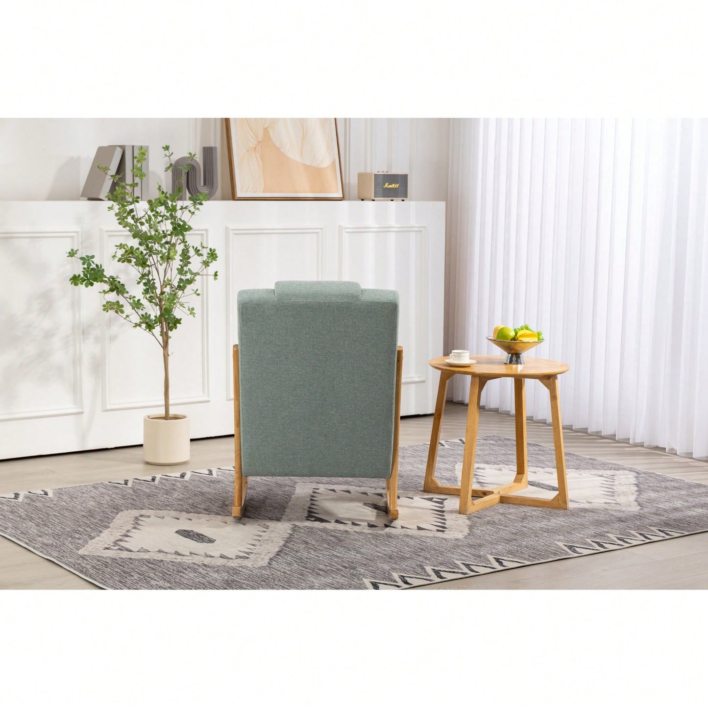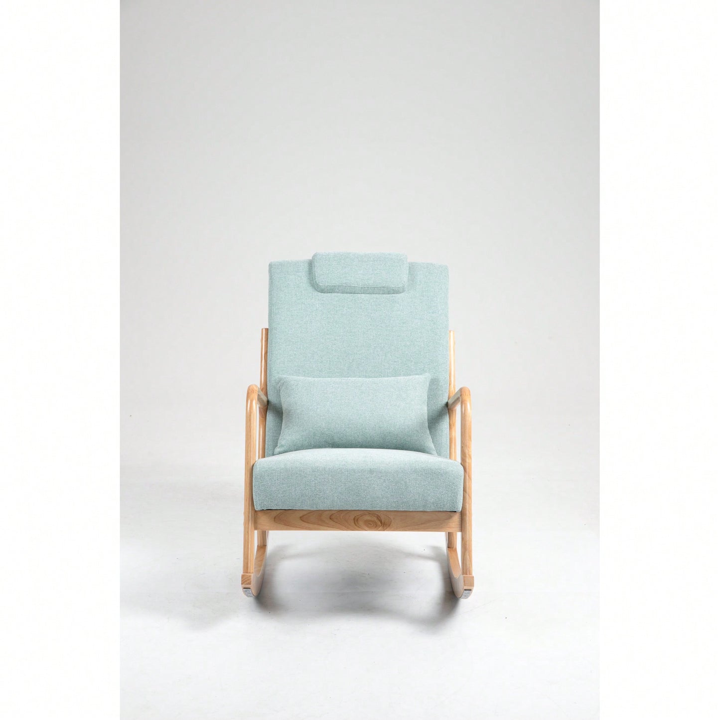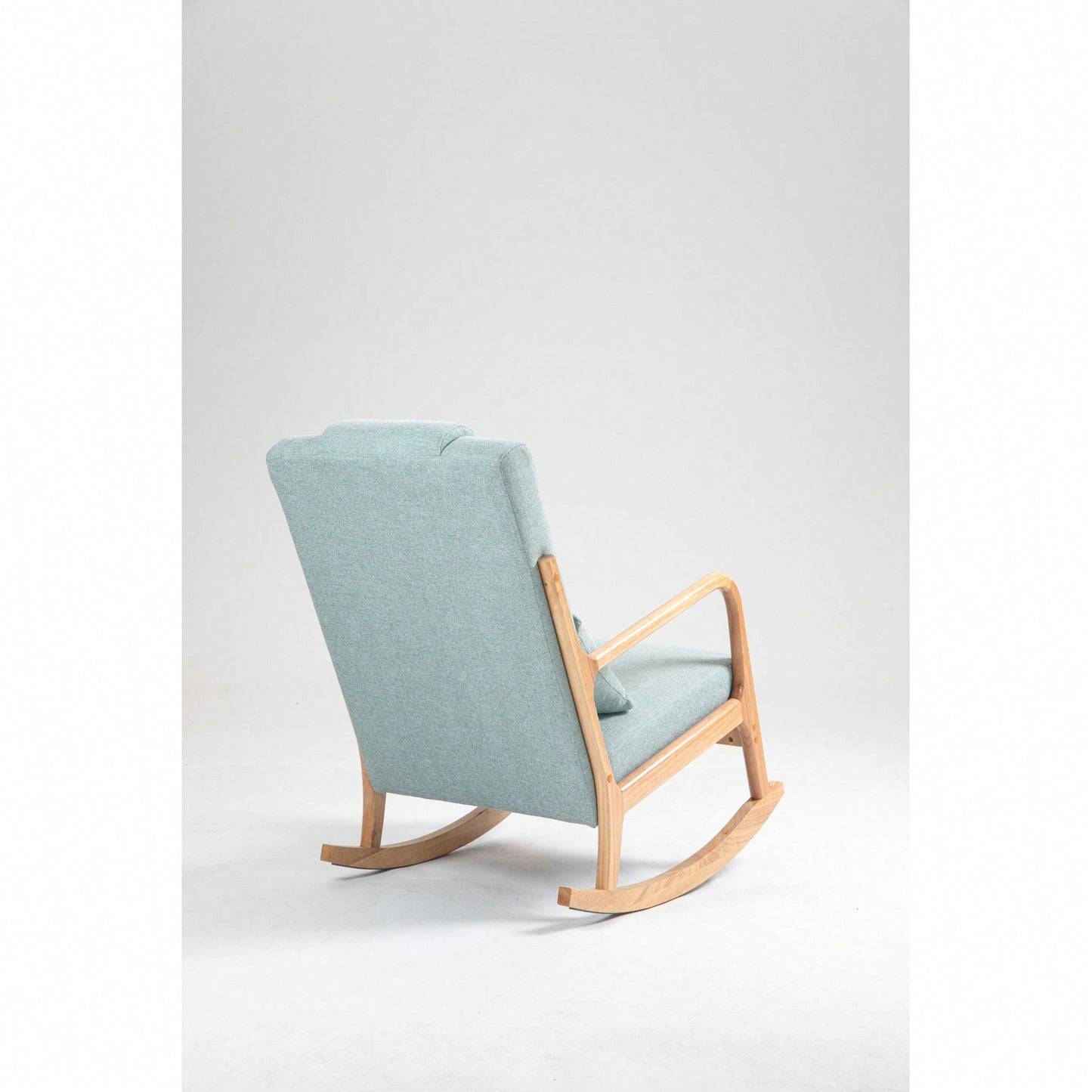 **Key Features:** - Firm solid wood base supports up to 300 pounds - Cushioned seats with high-density foam for comfort - Ergonomically designed high backrest and armrests for relaxation - Smooth swinging function for a soothing experience - Modern design complements both traditional and contemporary decor **Product Description:** This upholstered fabric rocking armchair is perfect for indoor use, featuring a high backrest and lumbar pillow for added support. The chair's solid wood base is not only firm but also enhances durability, while the cushioned seats and high-density foam ensure a comfortable seating experience. The ergonomic design allows you to relax your arms and hands, making it an ideal choice for your living room. Its modern aesthetic seamlessly blends with various decor styles, making it a versatile addition to any space. **Specifications:** - Weight capacity: 300 pounds - Material: Solid wood base, iron backrest frame, high-density foam - Includes: Lumbar pillow - Design: Ergonomic high backrest with armrests