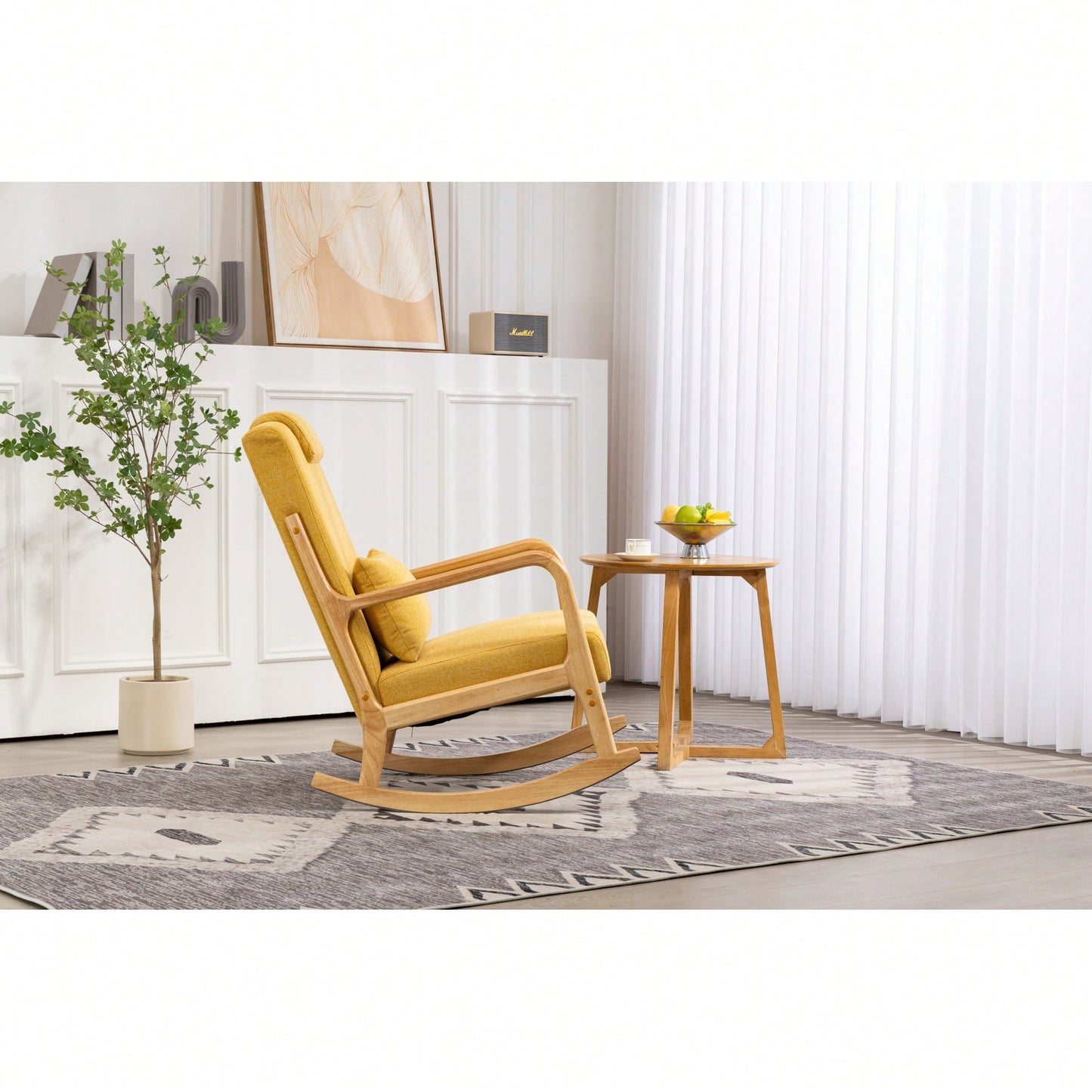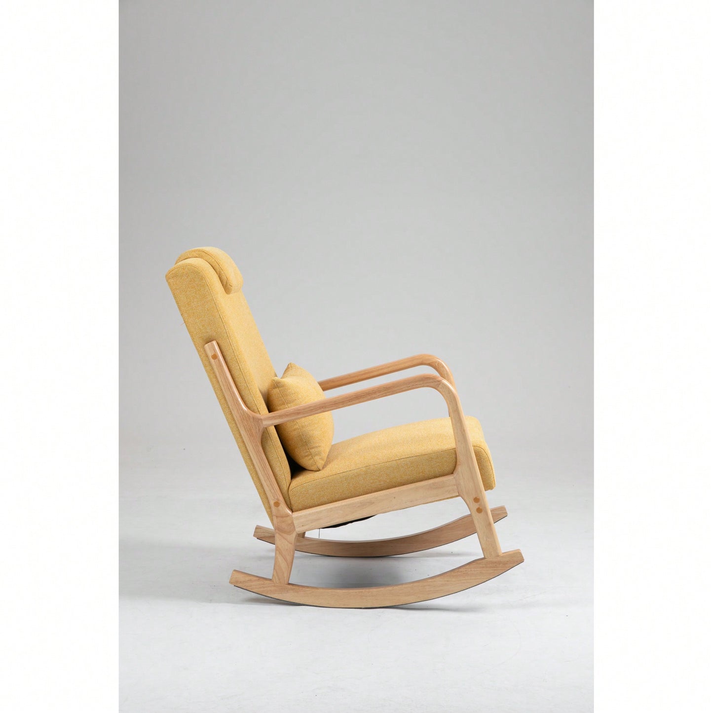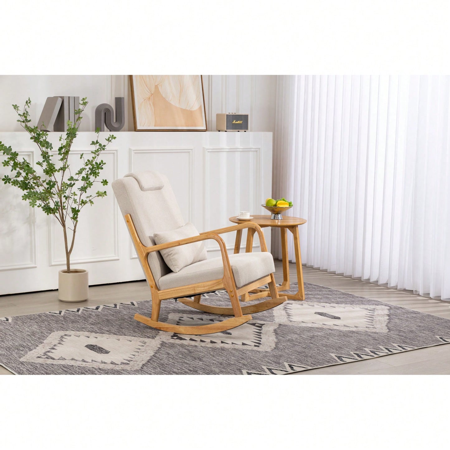 Upholstered High Back Rocking Chair With Lumbar Pillow For Living Room Comfort