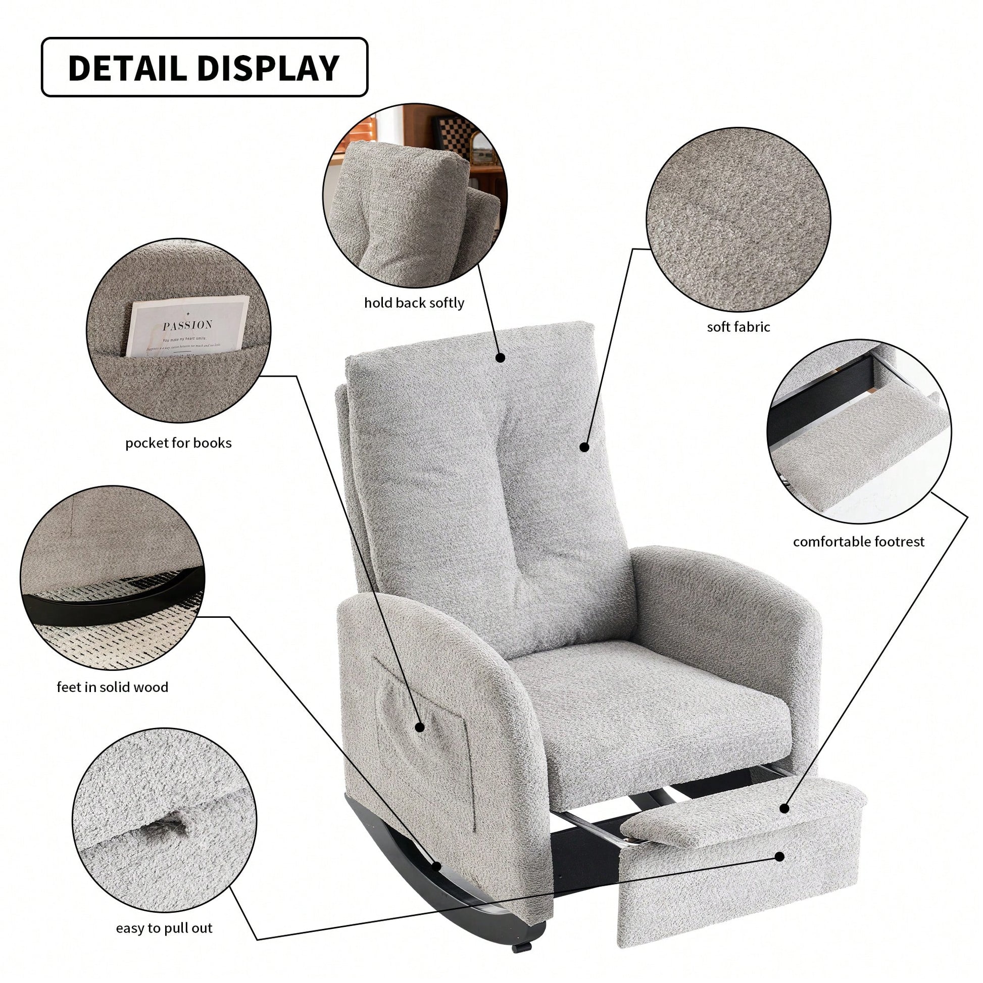 Ergonomic Upholstered Rocking Chair with Footrest High Back Padded Armchair for Living Room Bedroom Nursery