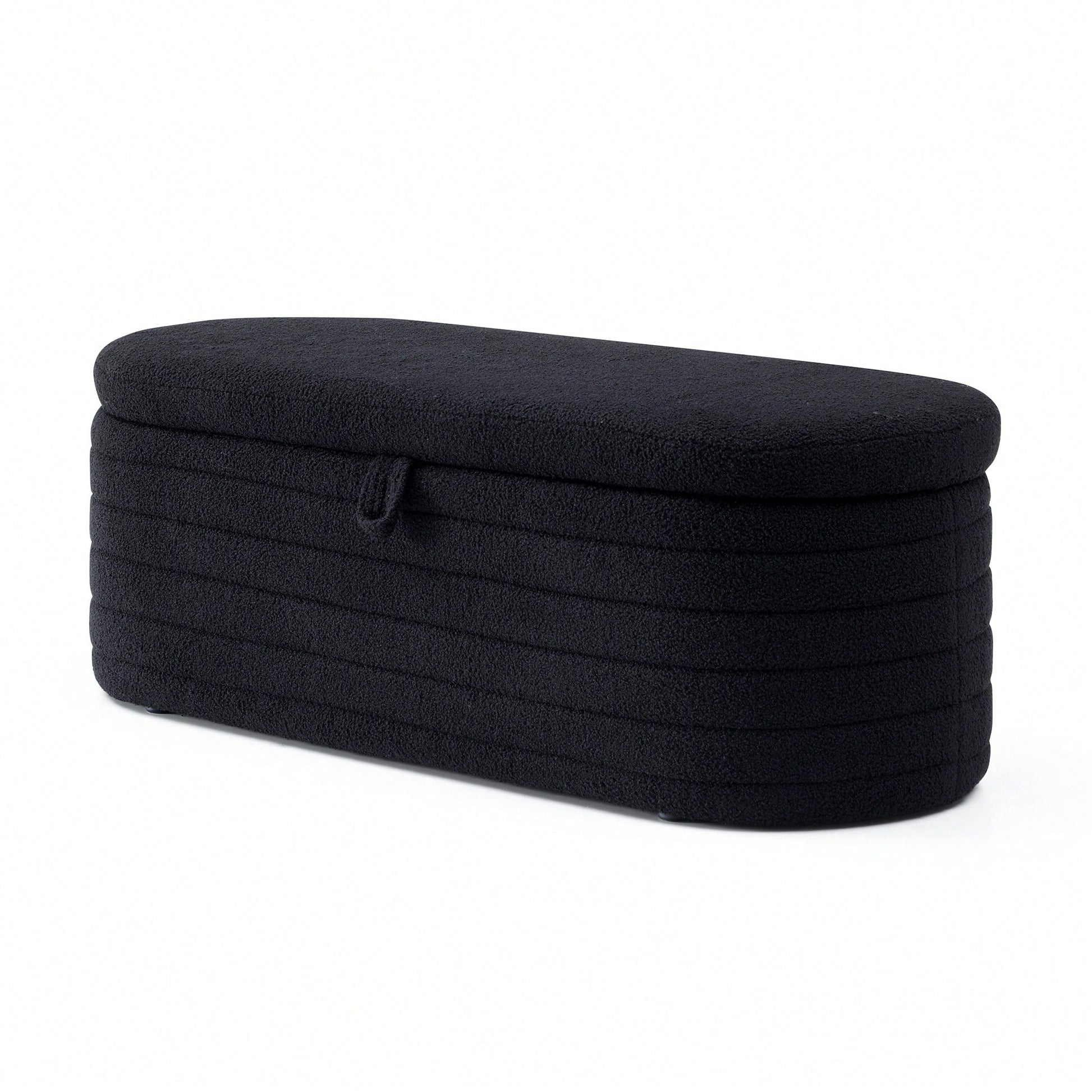 Upholstered Sherpa Fabric Storage Bench Large Ottoman For Bedroom Living Room Entryway Beige Toy And Shoe Organizer