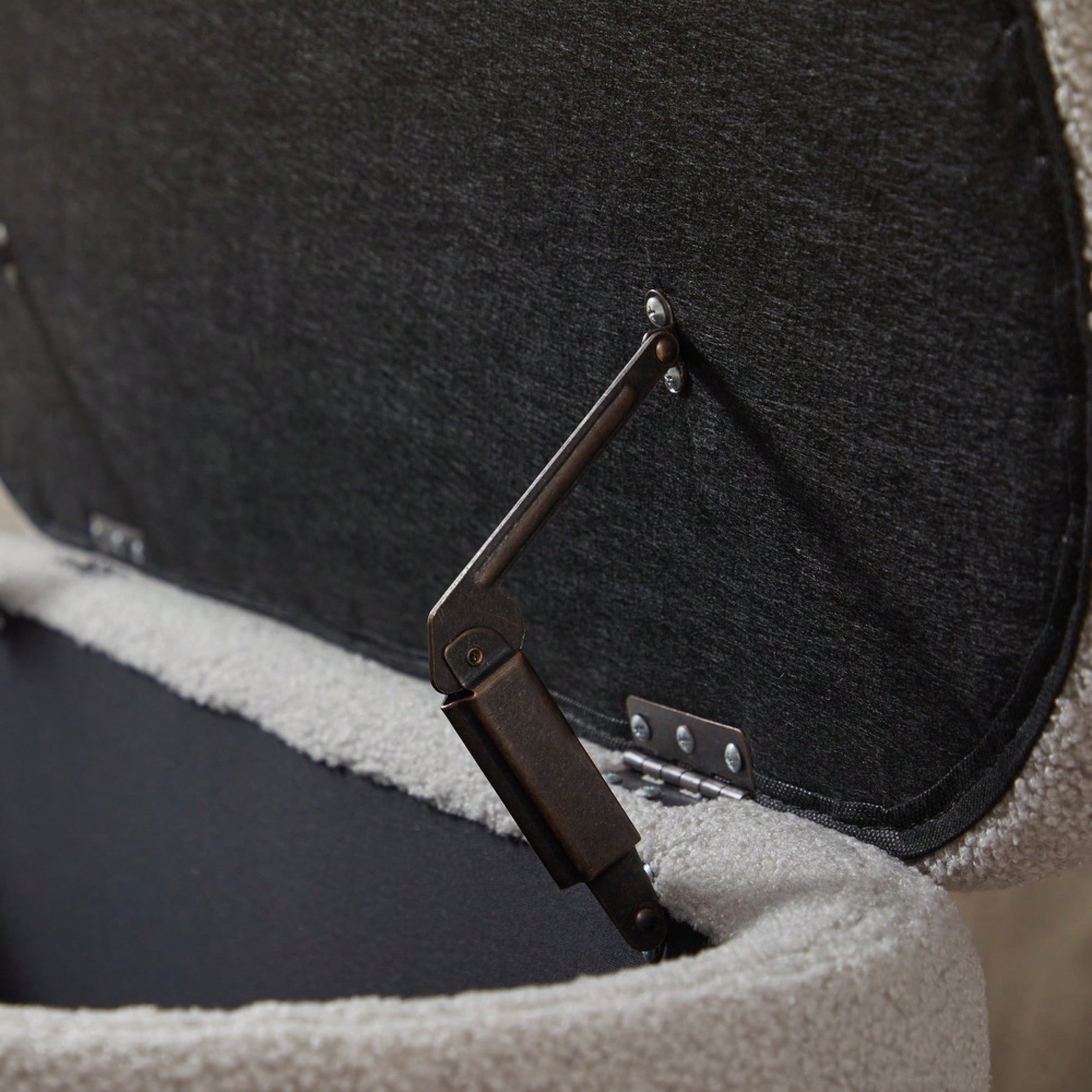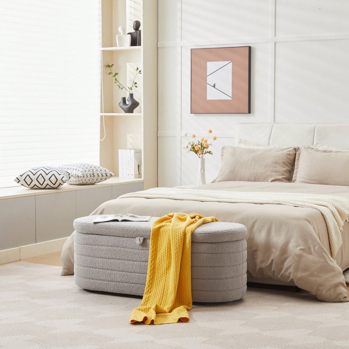 **Key Features:** - Bench-style design provides discreet storage for various items - Sturdy construction with a hardwood frame and wood legs - Upholstered in boucle fabric for a stylish appearance - Versatile use as an entryway bench, extra seating, or accent piece - Ideal for organizing and hiding books, magazines, shoes, and seasonal gear **Product Description:** This upholstered storage ottoman doubles as an entryway bench, offering both functionality and style. Its sturdy hardwood frame ensures durability, while the wood legs provide stability. The elegant boucle upholstery adds a touch of sophistication, making it a perfect addition to any room. Whether you need extra seating or a stylish accent piece, this versatile ottoman meets your needs while keeping your space organized and clutter-free. **Specifications:** - Frame Material: Hardwood - Upholstery Material: Boucle - Storage Type: Hidden compartment