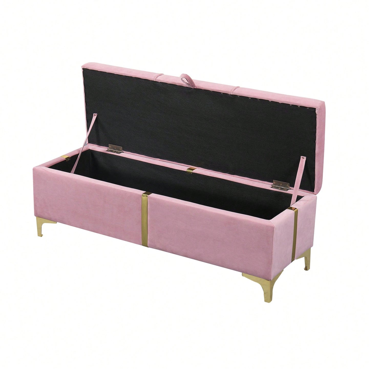 Upholstered Storage Ottoman,Storage Bench With Metal Legs For Bedroom,Living Room