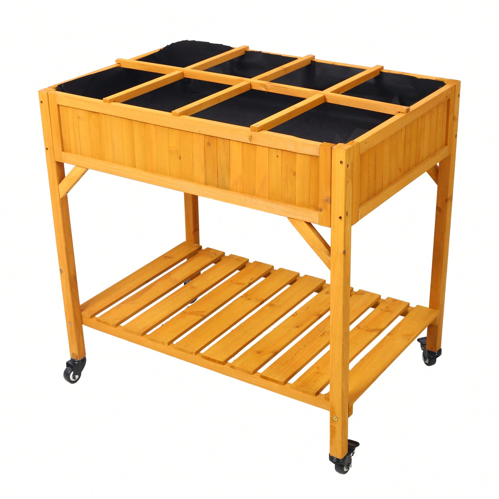 Customizable 8-Pocket Raised Garden Bed on Wheels with Storage Shelf for Herbs Vegetables and Flowers