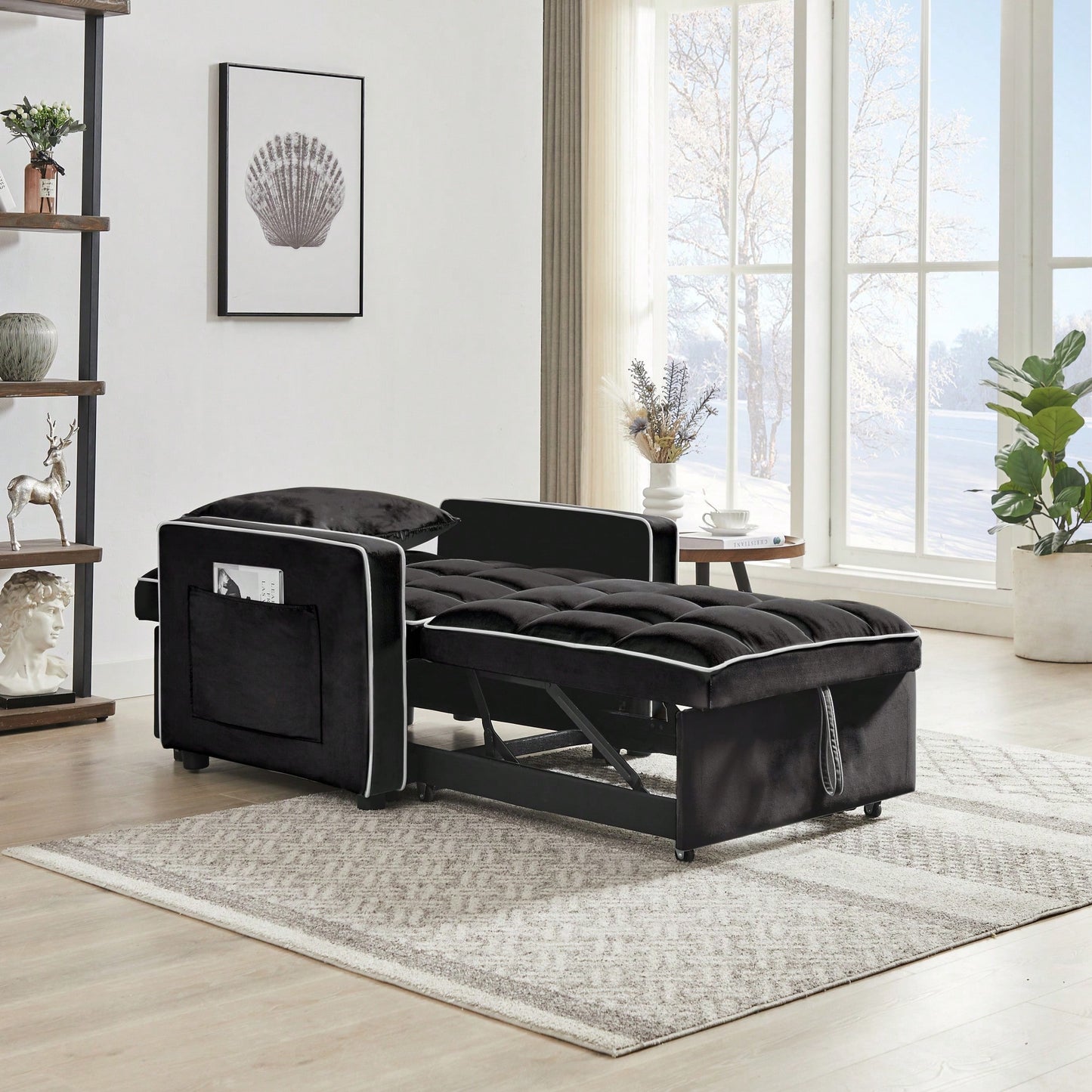 - Versatile three-in-one design: easily transforms from a chair to a sofa and a single bed
