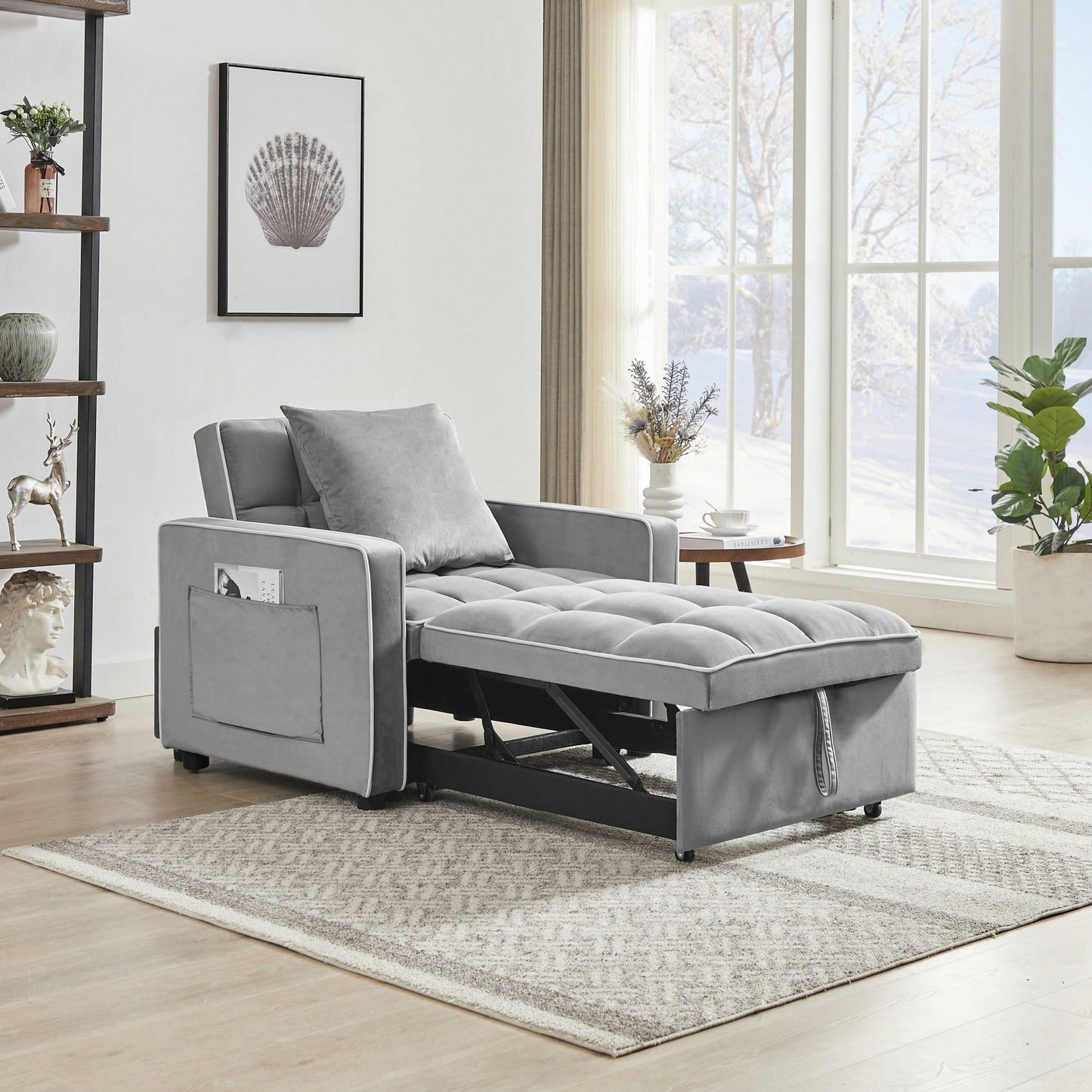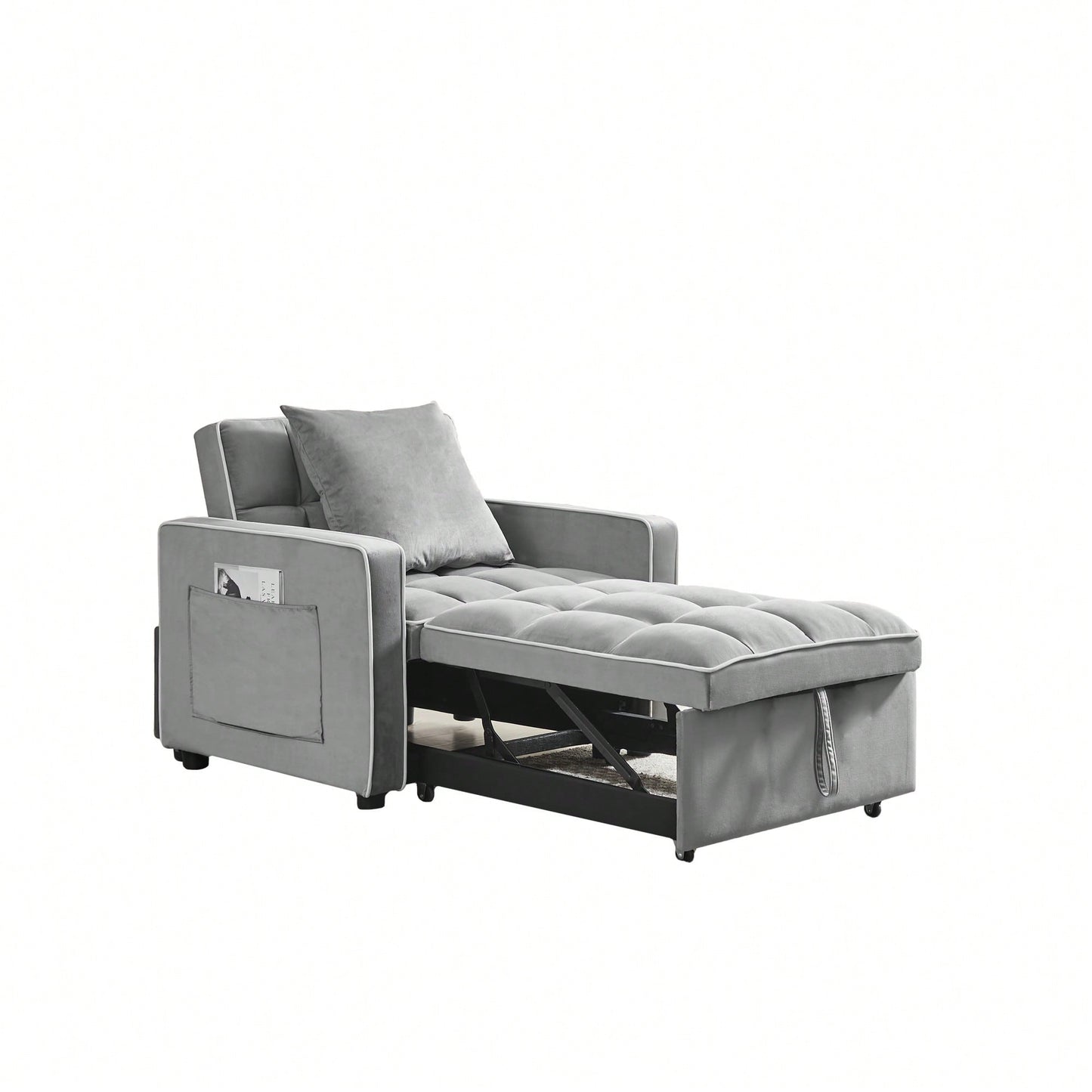 Versatile Grey Sofa Bed Chair With Adjustable Backrest For Modern Living Spaces, Folds Into Single Bed Or Recliner