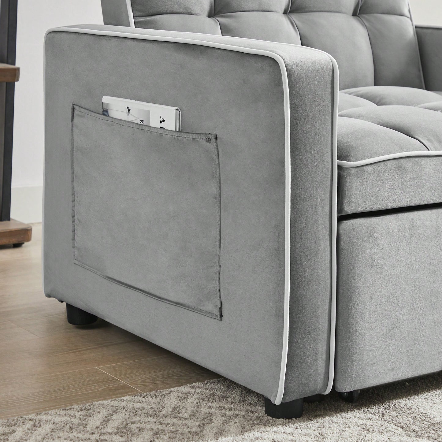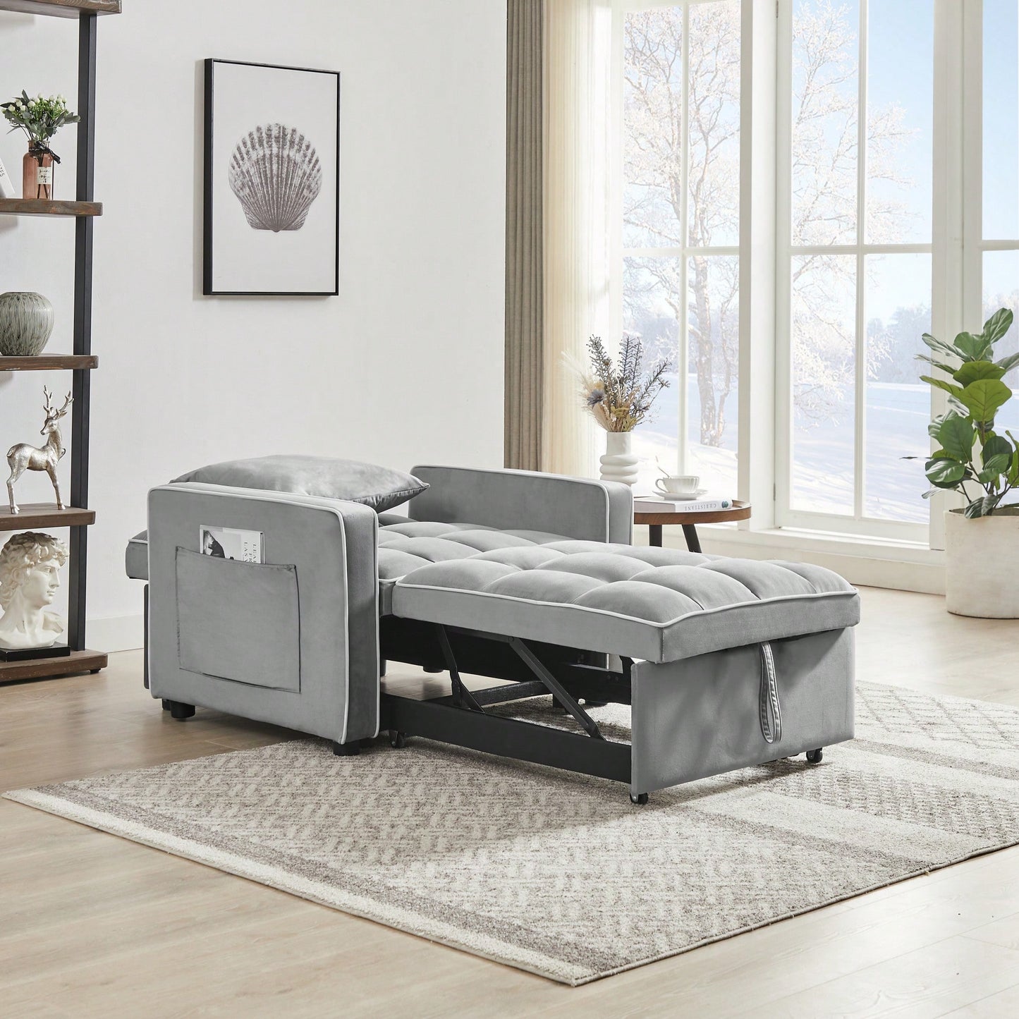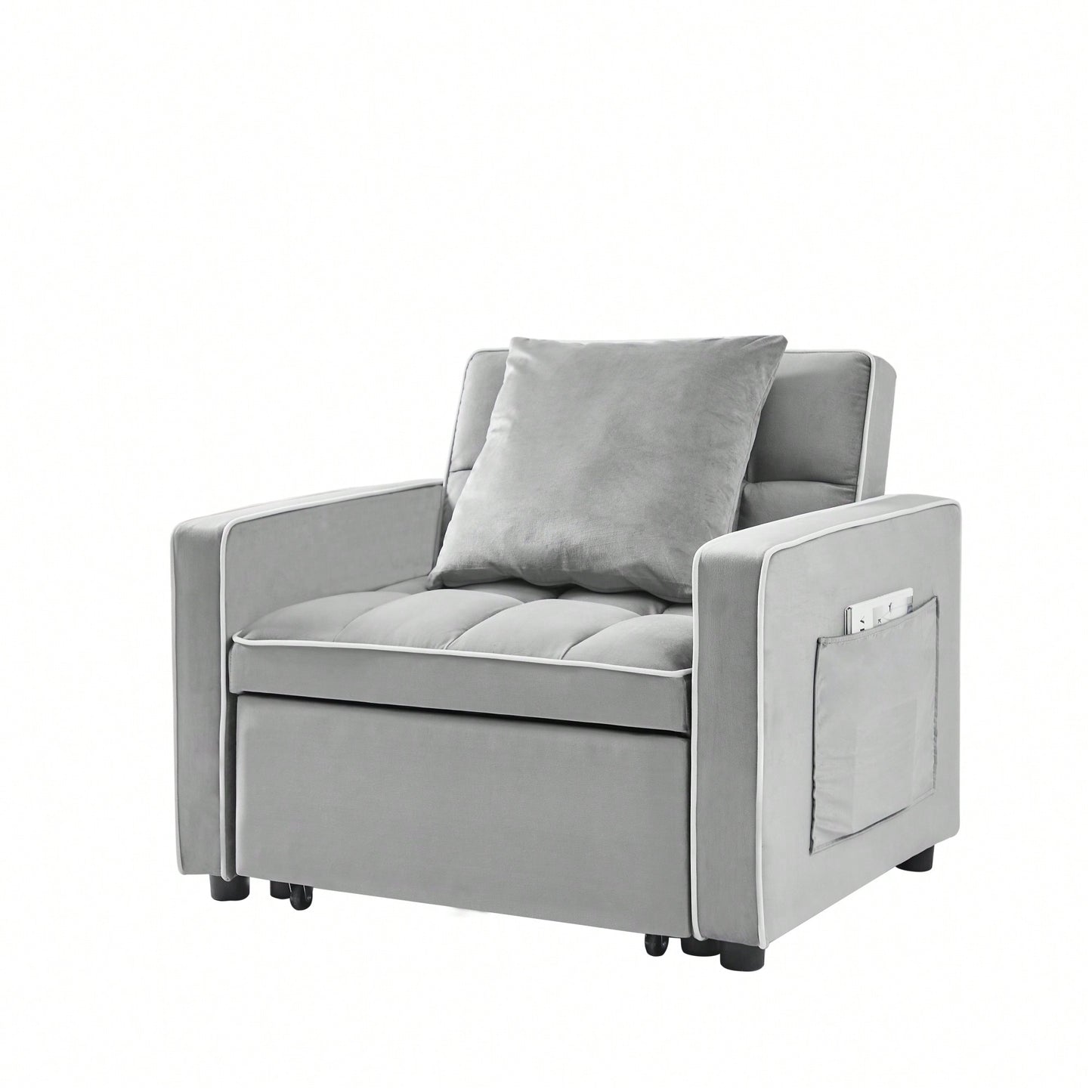 This modern sofa bed chair offers a practical solution for small spaces, combining style and functionality. It features a three-in-one design that effortlessly transitions between a chair, a sofa, and a single bed, making it perfect for guests or lounging. The adjustable backrest allows users to find their ideal position, while the curved backrest is designed with fiber cotton for enhanced comfort and support. Its sleek grey fabric complements any decor, and its compact size makes it an excellent choice for apartments, dorms, or cozy living rooms.