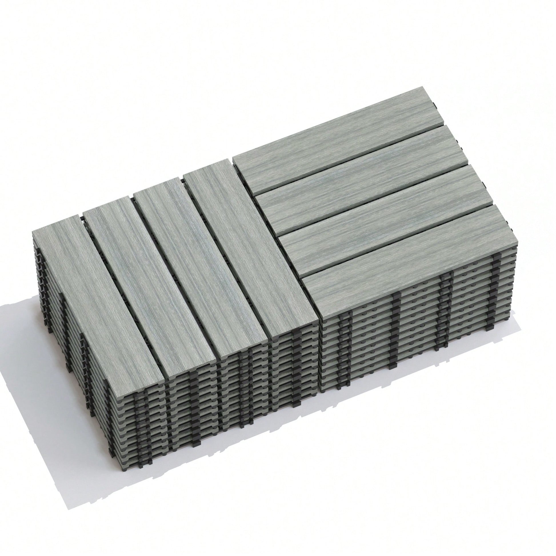 These composite wood decking tiles provide an excellent alternative to traditional wood flooring, combining aesthetic appeal with exceptional durability. Made from a unique blend of wood and plastic, these tiles are designed to offer the look and feel of wood without the associated vulnerabilities. The interlocking design allows for a hassle-free installation process, enabling you to transform your outdoor or indoor space with minimal effort. Whether you are enhancing your patio, deck, or indoor areas, these tiles are crafted to withstand the elements, ensuring that they remain functional and visually appealing year-round. Their solid construction supports heavy loads, making them a reliable choice for various applications.