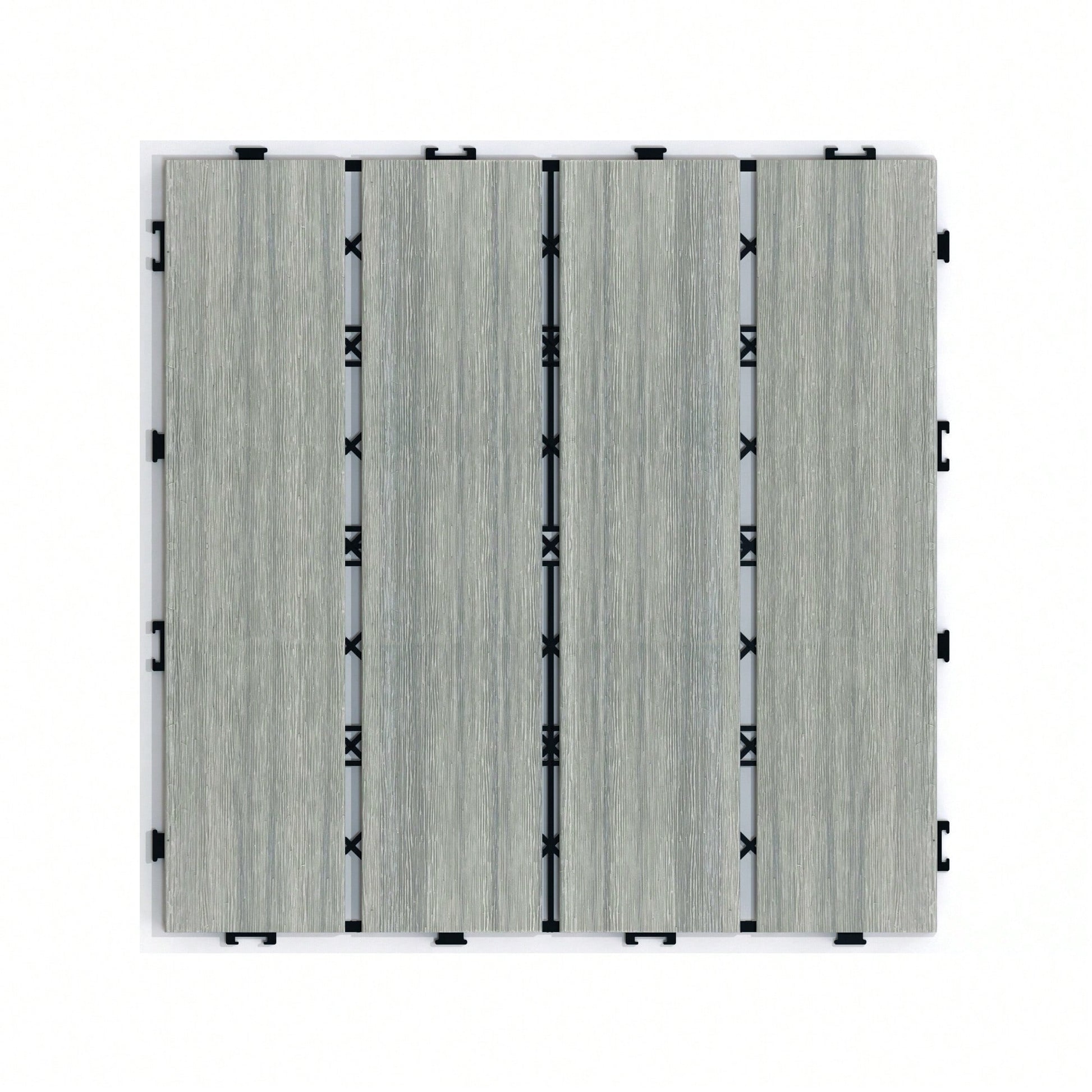 Durable Interlocking WPC Patio Deck Tiles Pack of 11 Water-Resistant Composite Flooring for Indoor Outdoor DIY Projects 11.8 Inch