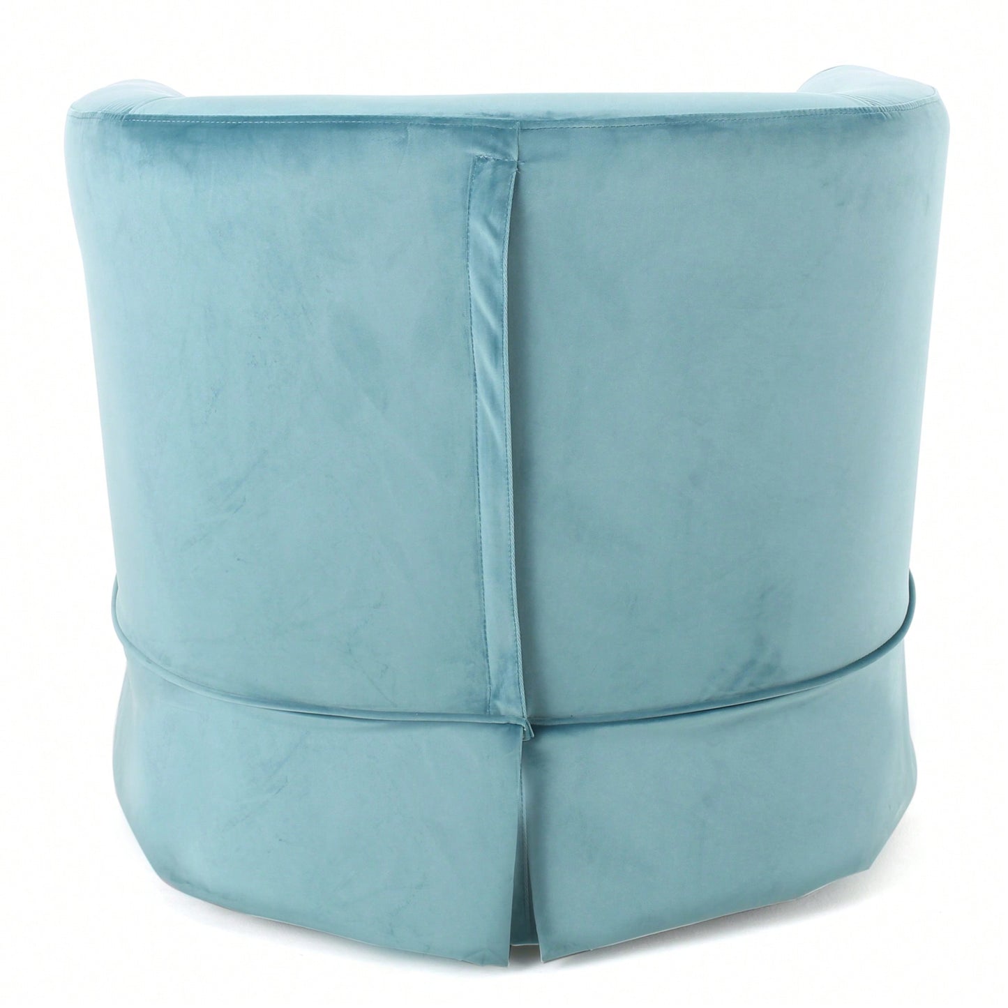 1. Features - Comfortable swivel design for easy movement - Ideal for reading, gaming, and movie watching - Soft new velvet upholstery for added comfort - Sturdy iron frame ensures durability - Stylish blue color with black leg finish 2. Product Description This swivel chair is the perfect addition to any room in your home. Designed for comfort, it allows you to effortlessly spin around, making it ideal for engaging in activities like reading or enjoying a movie. The plush new velvet material provides a cozy seating experience, while the robust iron frame guarantees long-lasting use. Its chic blue color paired with black legs adds a modern touch to your decor. Specifications: - Dimensions: 28.74 inches deep x 27.50 inches wide x 27.17 inches high - Material: New Velvet, Iron - Color: Blue - Leg Finish: Black