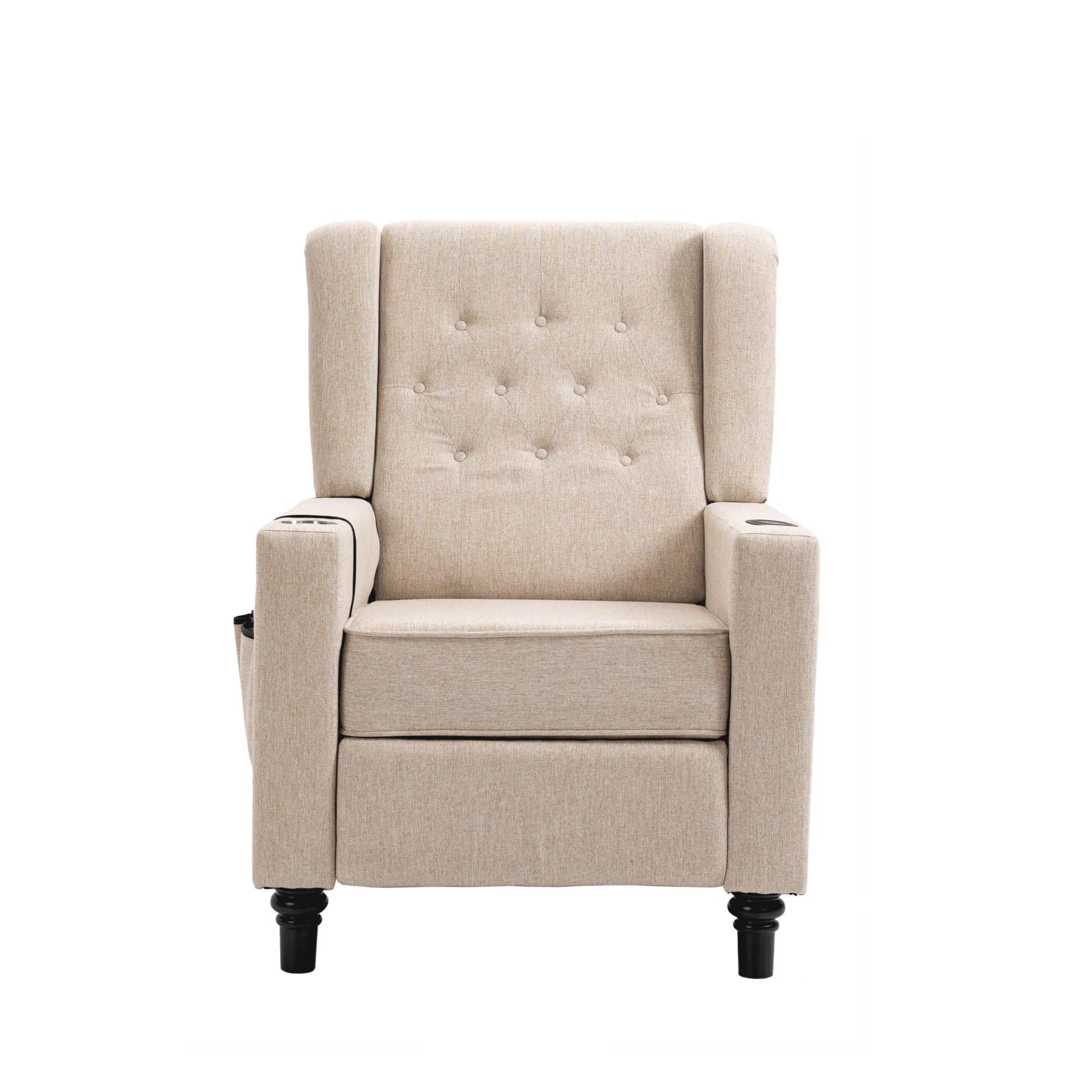 Modern Button Tufted Wingback Recliner Chair - Pushback Manual Living Room Seating, Fabric Single Reclining Sofa, Khaki Yellow