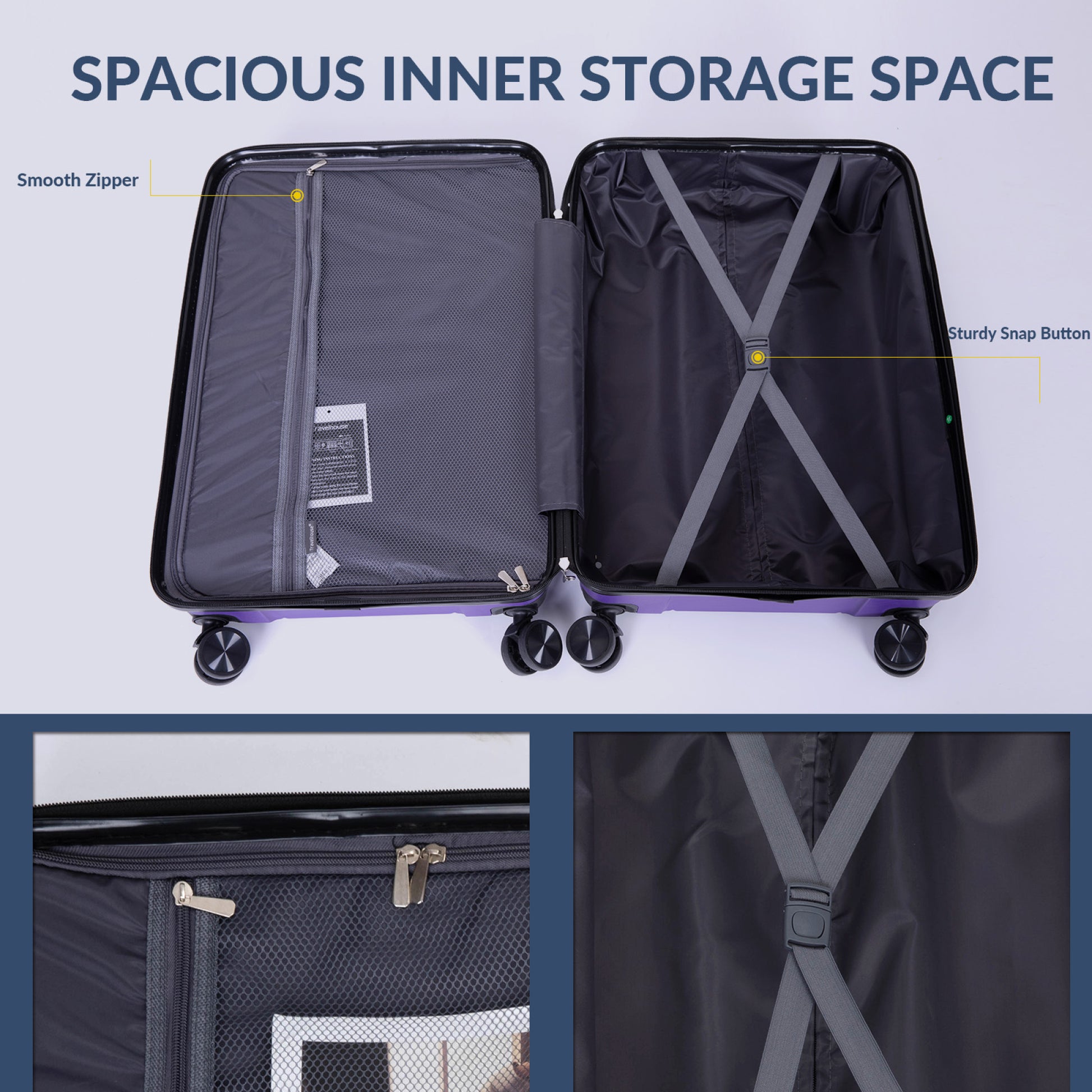 Lightweight Durable Hardshell Luggage Set with Spinner Wheels, 3-Piece (20/24/28) - Purple, TSA Lock