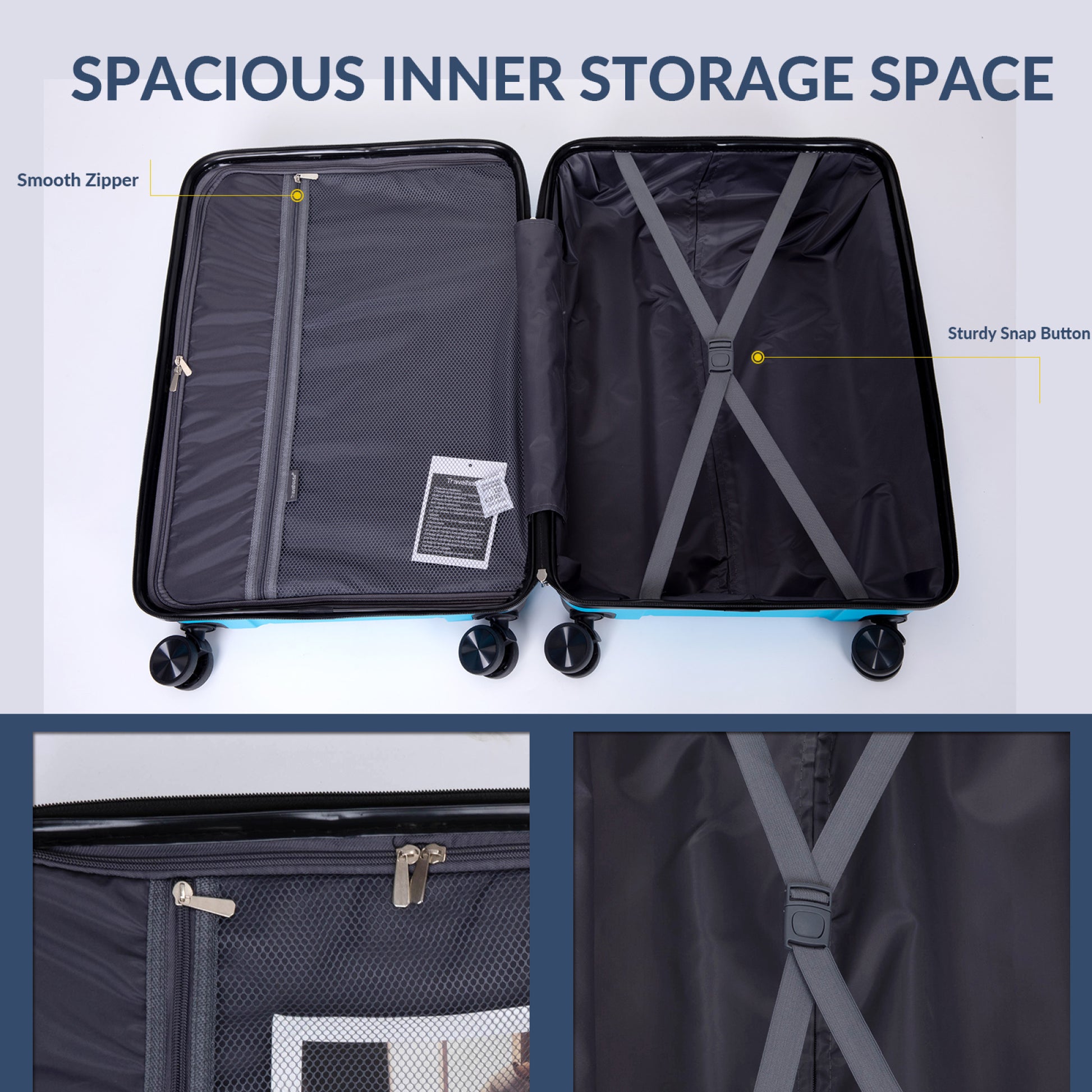 Lightweight Hardshell Luggage Set with Spinner Wheels & TSA Lock, 3-Piece Suitcase Set (20/24/28) - Light Blue