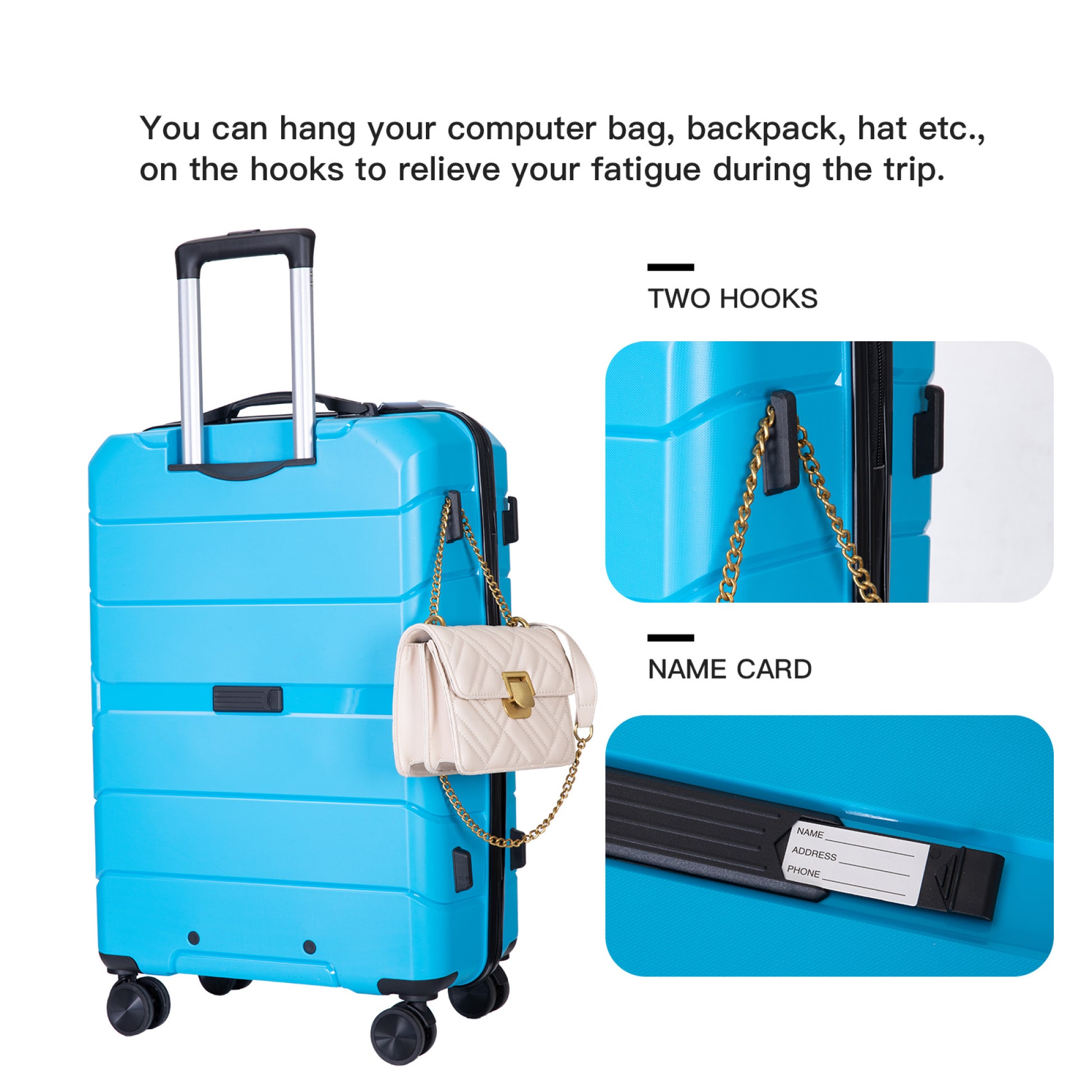 This three-piece luggage set is designed for travelers who prioritize durability, security, and convenience. Constructed from high-quality PP material, these suitcases are lightweight yet robust, ensuring they can withstand the rigors of travel. The set includes three different sizes to cater to various travel needs, whether it's a weekend getaway or an extended trip. The expandable and organized interior provides ample space for all your essentials while the adjustable pull rod accommodates different heights for user comfort. Plus, the 360° double spinner wheels allow you to navigate busy airports and city streets with ease.