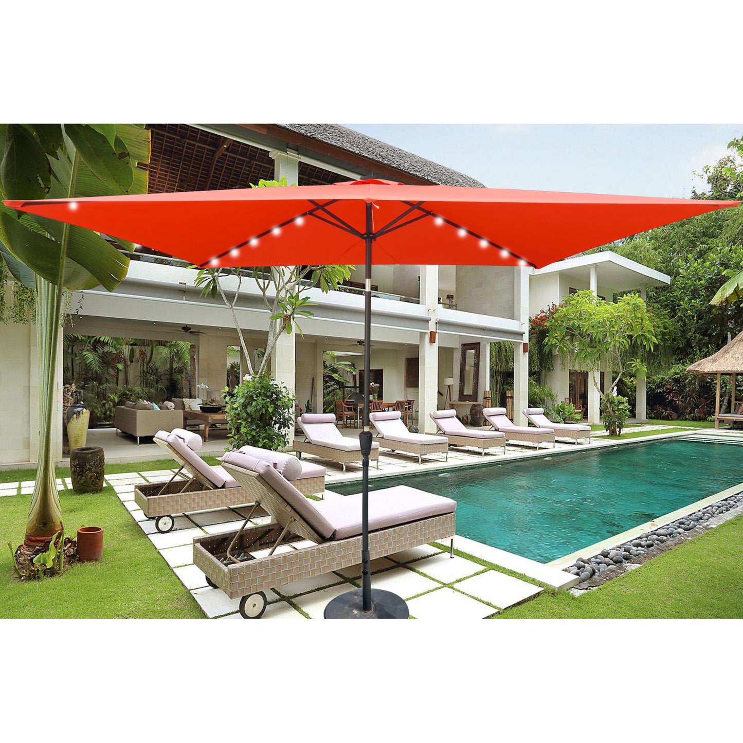 - Enjoy stylish outdoor gatherings with a 10 x 6.5 ft rectangular patio umbrella featuring solar-powered LED lights for added ambiance.