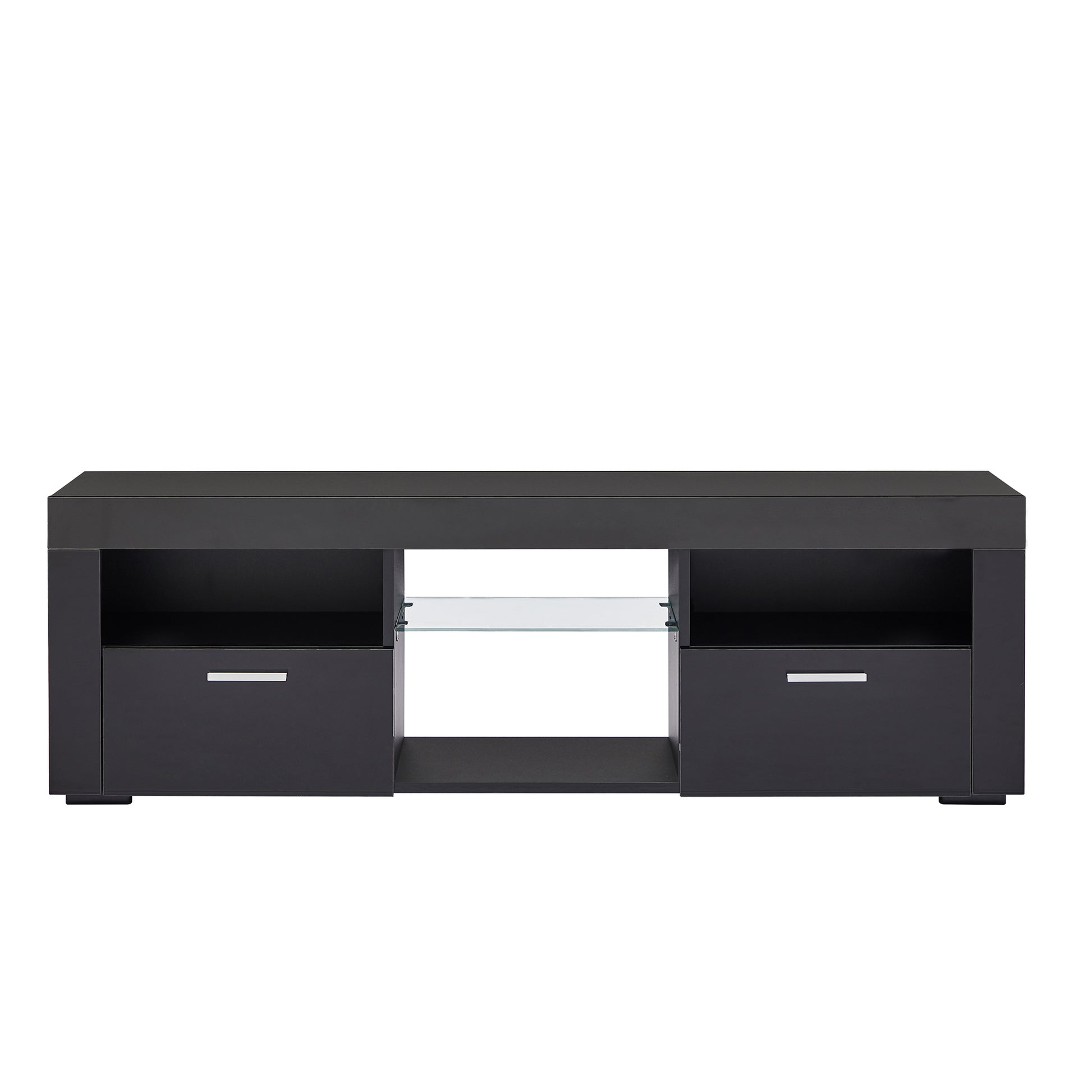 Black Modern TV Stand with LED Lights, High Gloss Finish, Stylish TV Cabinet for Lounge, Living Room or Bedroom, Sleek Design, Color: Black