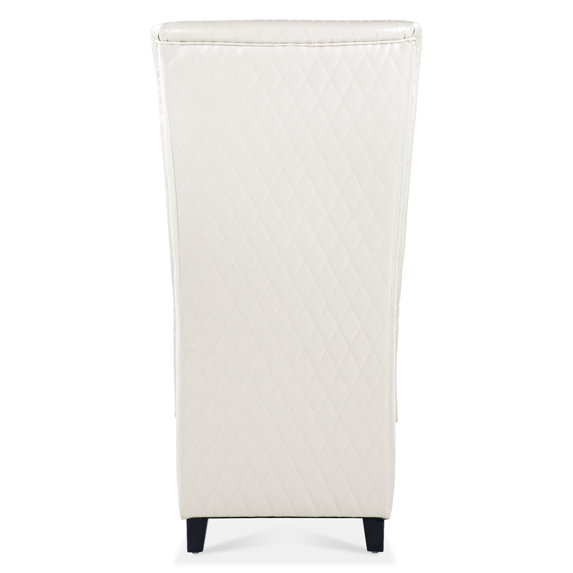 Comfy Wide High-Back Faux Leather Accent Chair, Modern Wingback Chair with Soft Padding & Wooden Legs, White