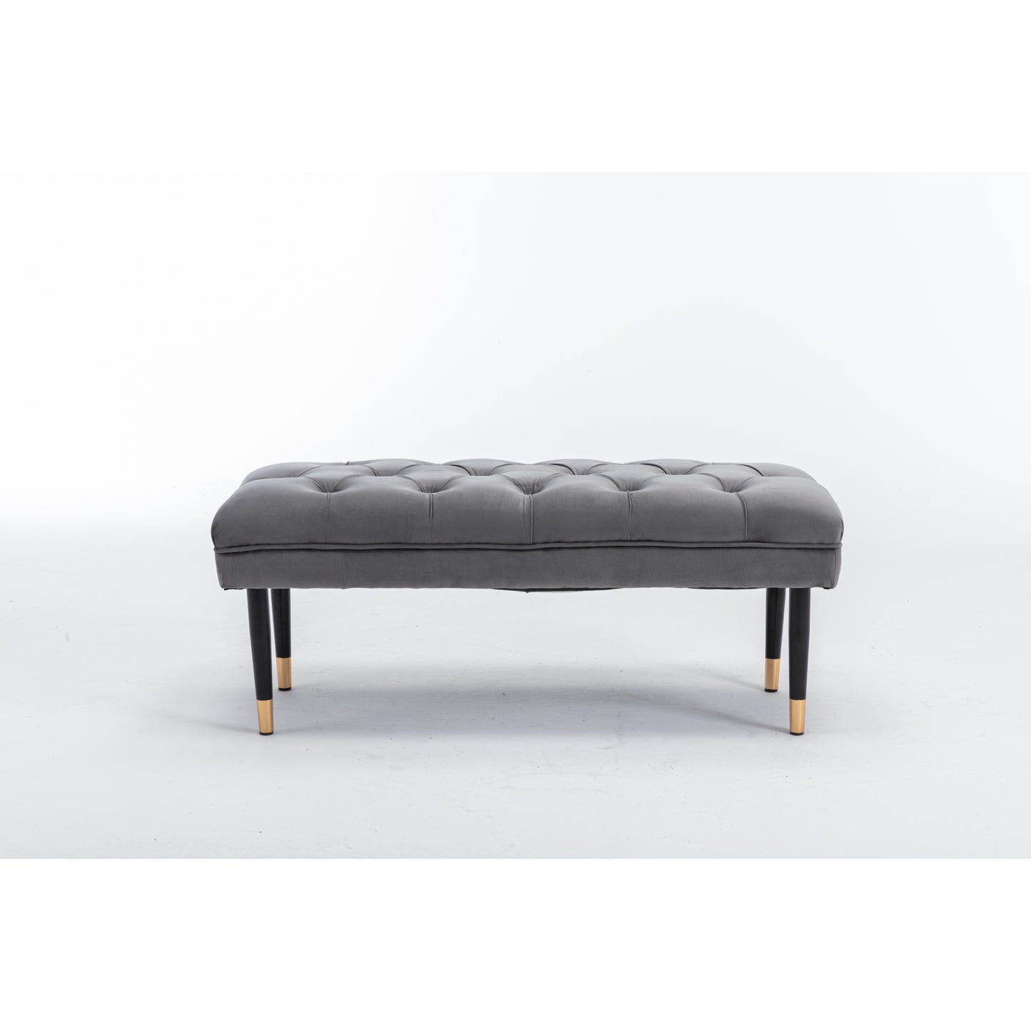 Modern Velvet Tufted Bench - Upholstered Ottoman Footstool with Metal Legs for Bedroom, Living Room, and Entryway - Grey