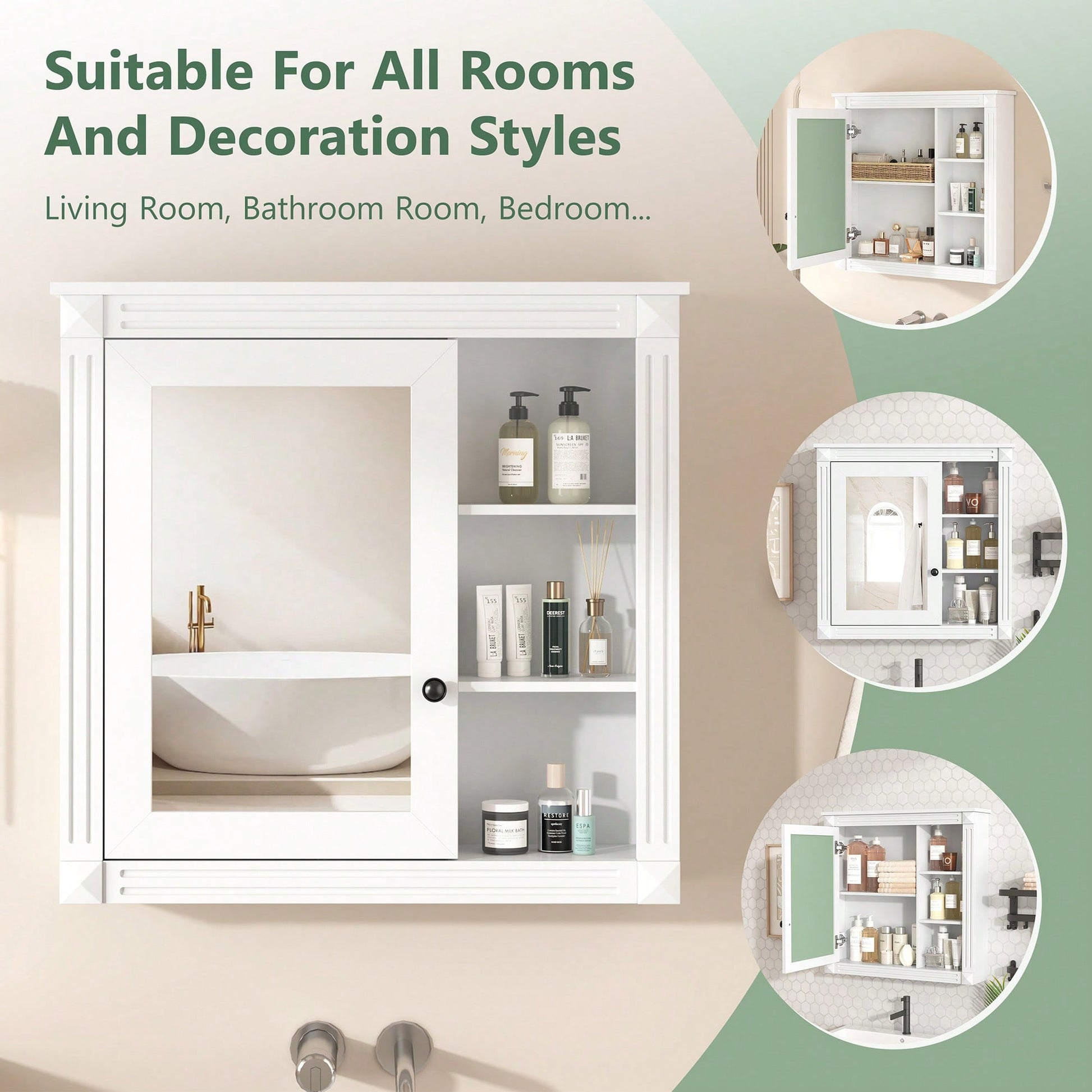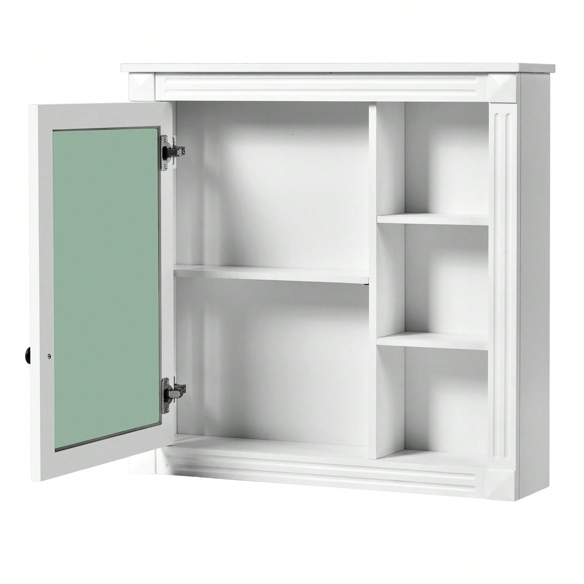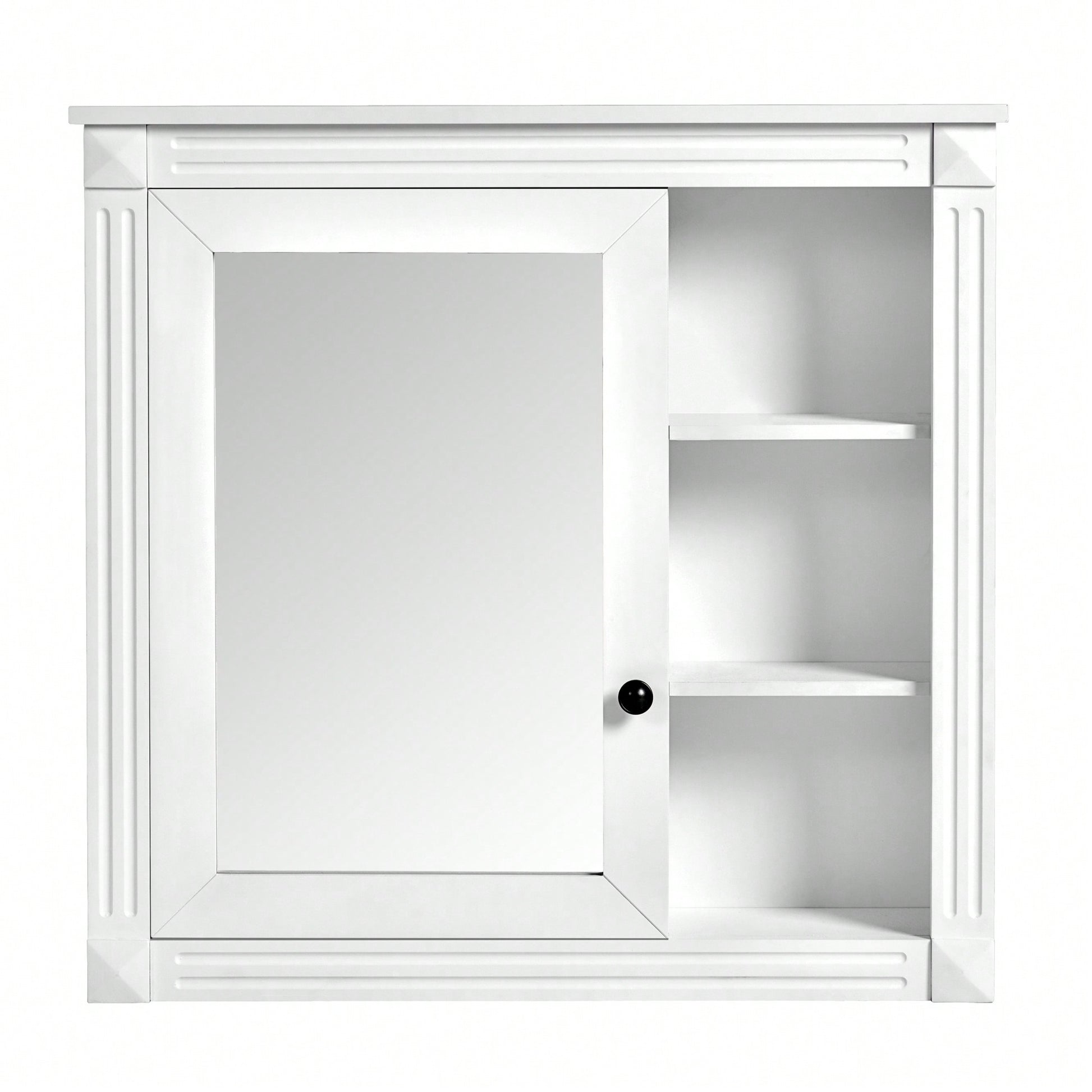 Wall Mounted Bathroom Mirror Cabinet With Storage Organizer And Over The Toilet Shelves In White