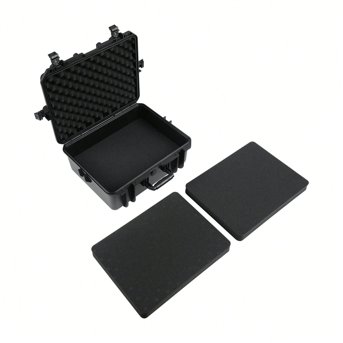 **Key Features:** - IP67 rated for waterproof and dustproof protection - Watertight rubber O-ring seal with automatic pressure equalization valve - Ergonomic rubber overmolded handles for easy transport - Rust and corrosion-resistant stainless steel lock protectors and hardware - Versatile design suitable for various equipment and use cases **Product Description:** This rugged plastic safety box is designed to provide superior protection for your valuable gear. With an IP67 rating, it is fully waterproof and dustproof, making it ideal for use in various conditions. The watertight rubber O-ring seal and automatic pressure equalization valve ensure that the case maintains air pressure, allowing for easy lid opening regardless of altitude. The durable construction features ergonomic handles that can be folded away for convenience, along with stainless steel components that resist rust and corrosion. This case is perfect for photographers, musicians, and professionals needing to transport equipment securely, offering a lightweight and travel-friendly solution. Additionally, it can serve multiple purposes, functioning as a dry box, lockbox, toolbox, and more, catering to a wide range of storage and transportation needs. **Specifications:** - Waterproof Rating: IP67 - Material: High-quality plastic - Handle Type: Ergonomic rubber overmolded - Lock Protection: Stainless steel - Functionality: Multi-purpose (dry box, lockbox, toolbox)