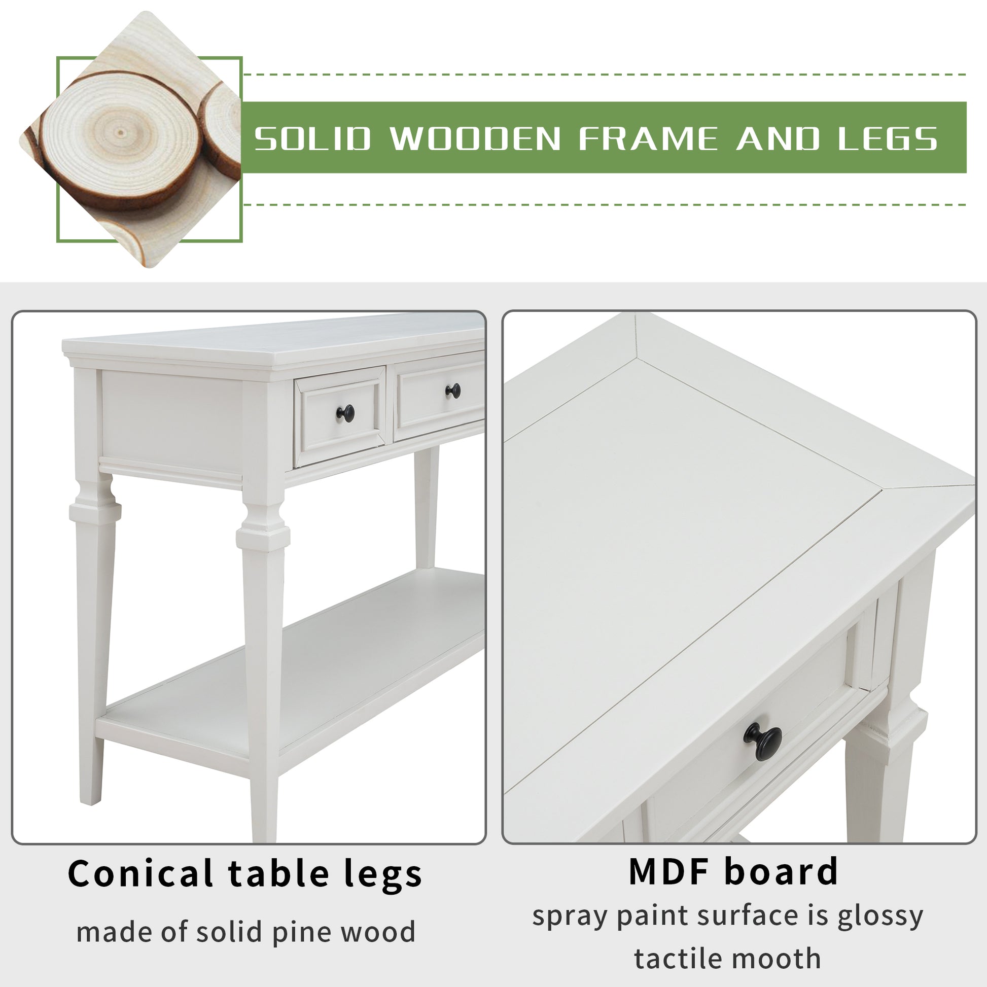 Classic Retro Console Table with 3 Drawers & Open Bottom Shelf, Antique White - Easy Assembly