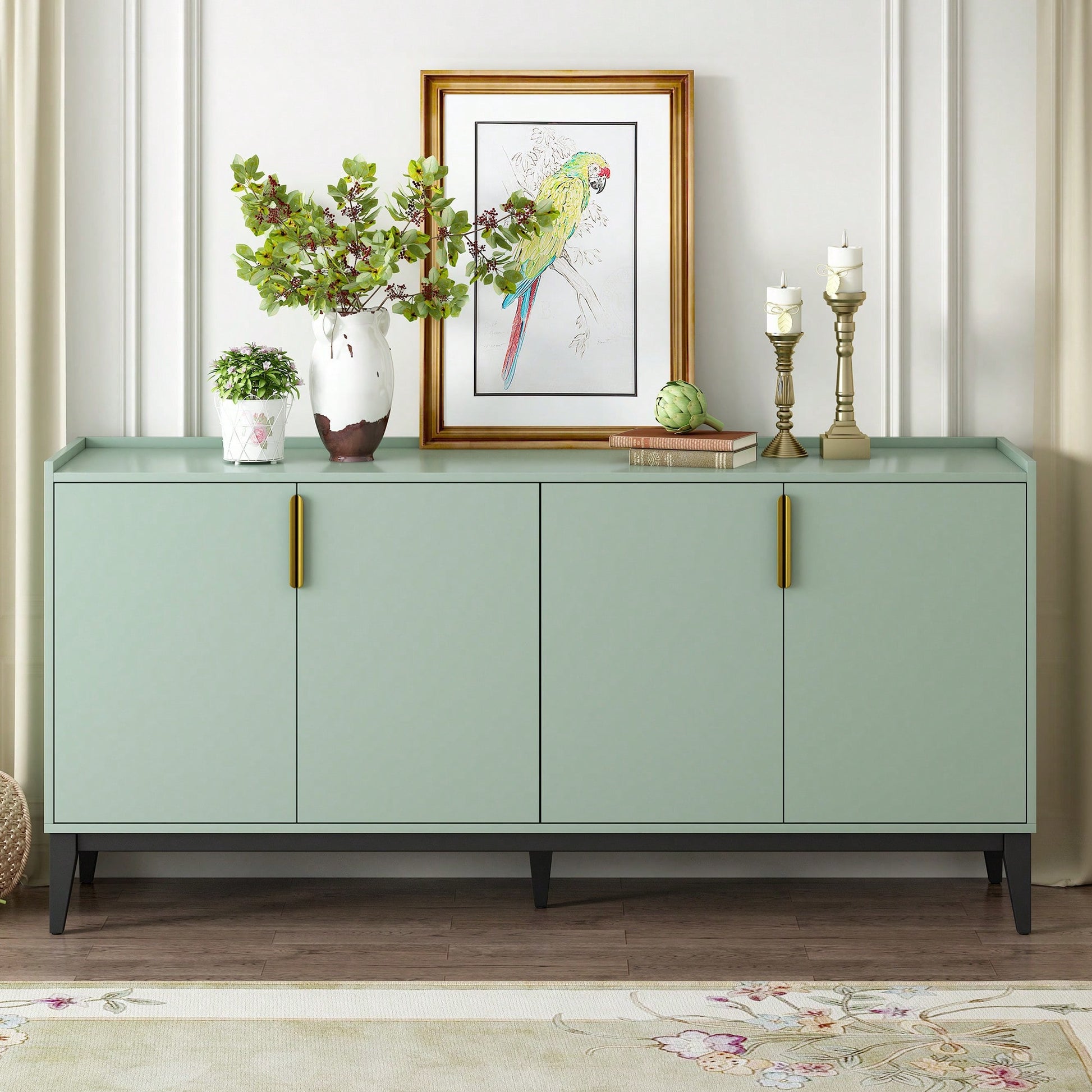 Wooden Storage Cabinet Sideboard With 4 Doors For Hallway Entryway Living Room Adjustable Shelves